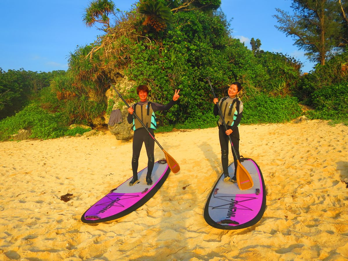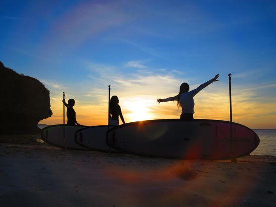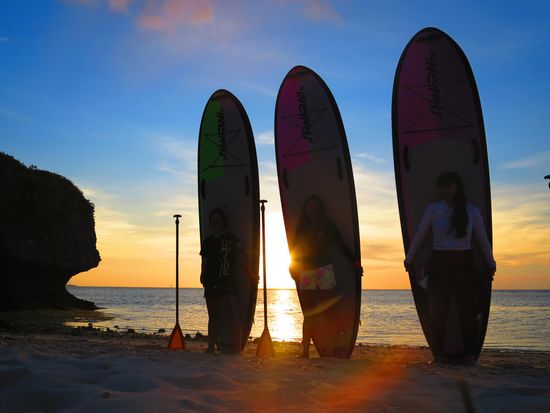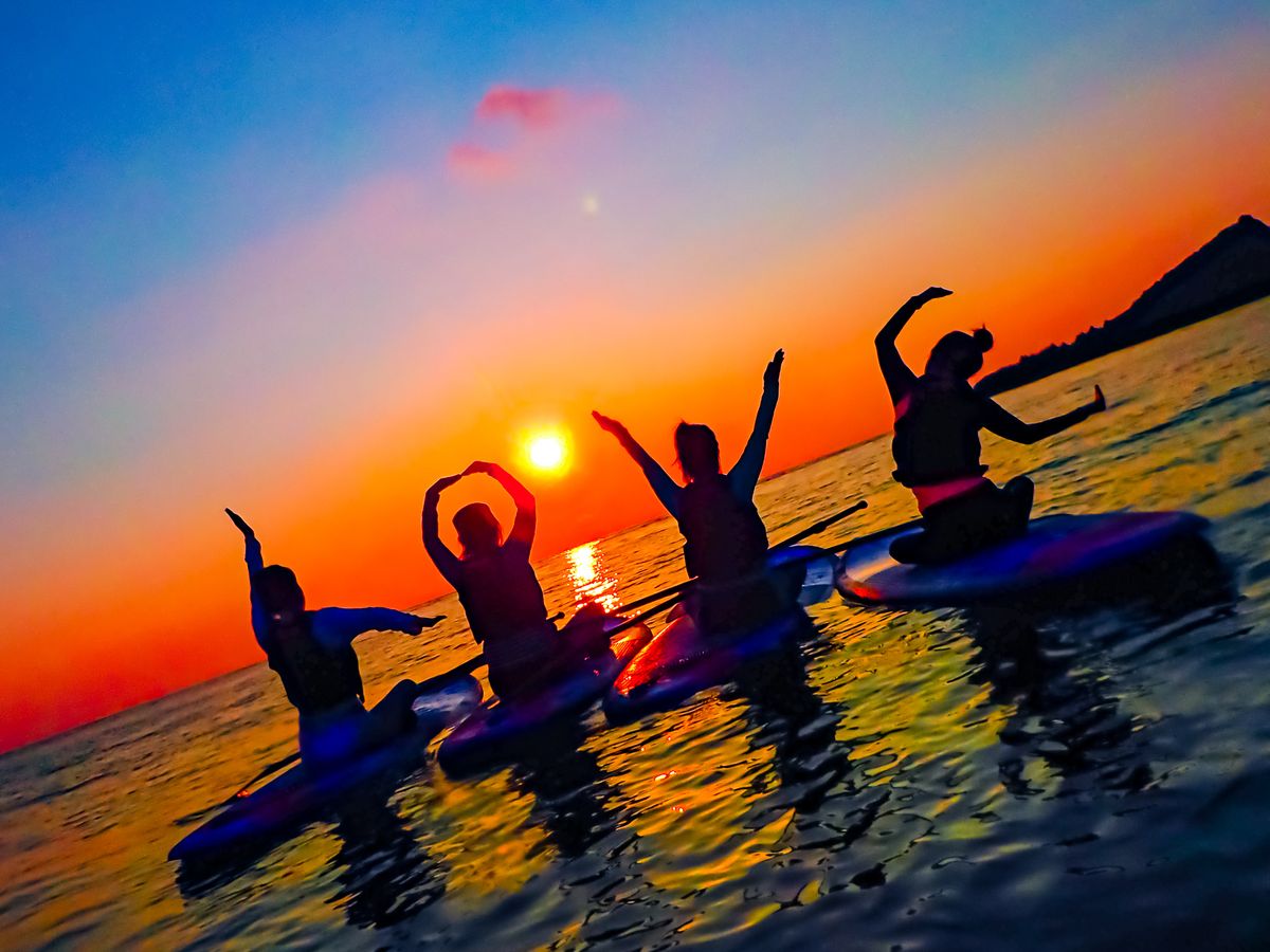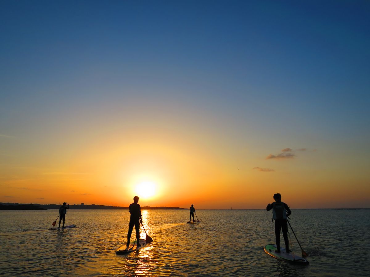 Experience the magic of a Sunset SUP tour in Onna Village. Paddle through golden waters as the sun sets, creating unforgettable memories. Enjoy free photo & video services, and comfortable facilities. Perfect for beginners.