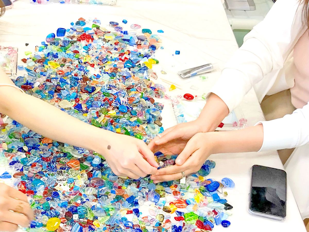 琉球玻璃碎料藝術板手作體驗:用多彩玻璃自由裝飾!非常適合與家人朋友一起創造美好回憶◎<下午/約1小時/沖繩本島/國際通>