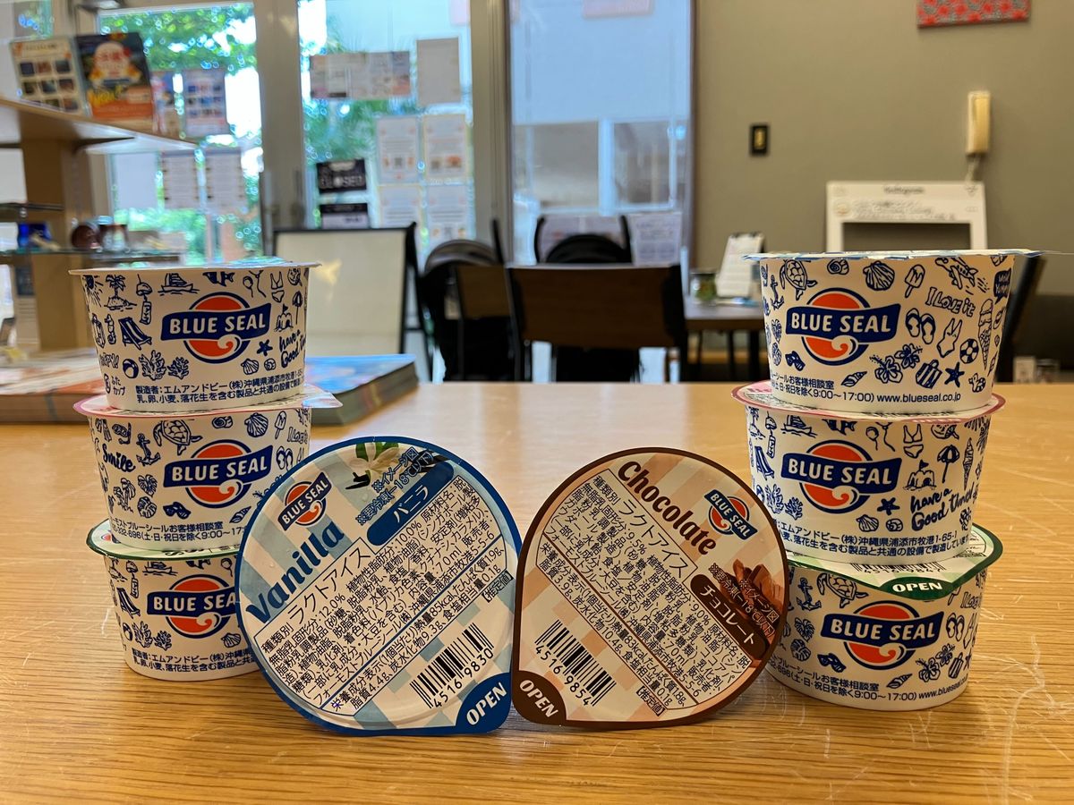 Redeem your voucher for Blue Seal Ice Cream at the Okinawa Lounge.