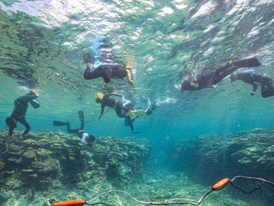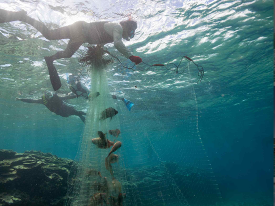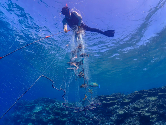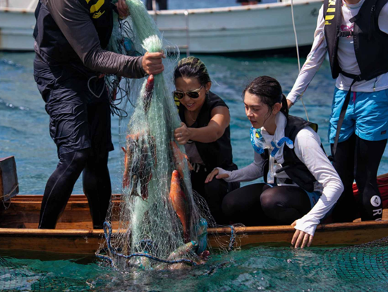 Experience Iheya Island’s traditional Ami Jike fishing on a Sabani boat. Guided by local fishermen, herd fish in shallow waters and enjoy your fresh catch as sashimi or foil-grilled dishes. Includes free underwater video data.