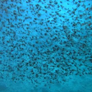 ひとしきり遊んだ後、洞窟を後に引き返します。途中でお魚達にエサをあげてみると…‼︎ みんなものすごく食いついてくる!元気な魚たちがドバーッと周りには群がり、楽しい〜\(^o^)/