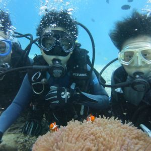 We did a trial dive for our 11-year-old and 10-year-old, as well as snorkeling in the Blue Cave. Since we have done snorkeling many times, everything went smoothly without any issues. It was the children's first time diving with tanks, but we were able to trust the staff completely. The wonderful time underwater ended too quickly, and the kids mentioned they wanted to dive for a longer time. The staff was very nice, and if we have the chance, we would like to do the same tour with the same company again. The beauty of the ocean in Okinawa is amazing.