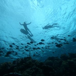 1/2に家族4人で参加しました。船はシュノーケルの人、ダイビングの人と相乗りで30人くらい乗り合わせていました。この日は晴れてはいましたが風が冷たく、移動中や海から上がった後はとても寒く、ダウンを着て行ってよかったです。海の中は今までシュノーケルした中で一番の透明度でした!7〜8mある海底もきれいに見え、空を飛んでいるようでした。スタッフの方がシュノーケル中に魚や珊瑚の名前をその都度教えてくれたり、写真を撮ってくれました。船の上ではスタッフの方や参加した方とおしゃべりしたり、ランチのソーキそばと白玉ぜんざいを食べました。子供たちだけでなく、私たち夫婦もアドレナリンが出まくった楽しくてはしゃいだ1日でした。スタッフの方たちは皆さん明るく参加した人が不安にならないように対応してくれるので、一人や子供連れの参加でも楽しく過ごせると思います。また沖縄に行ったら参加します!