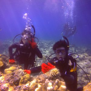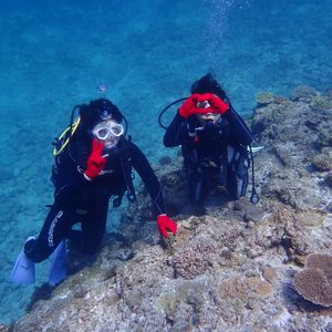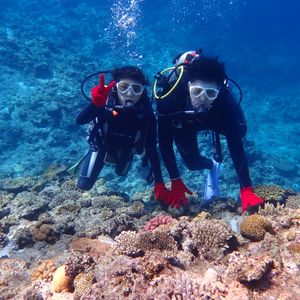 This time, I went to Okinawa for diving. I participated in this tour. Since it was my first diving experience, I was half excited and half anxious, but the instructor explained everything thoroughly at the beginning, and there was one instructor for every two people during the dive, who checked on us regularly, which made me feel at ease. Under the sea, they helped us find various creatures and taught us their names on a whiteboard, which was a lot of fun! I was also able to encounter many sea turtles, which I had longed for, and I was very satisfied! Drinks, lunch boxes, and bath towels were provided, and there were showers and changing rooms, so I was able to spend my time comfortably. Thank you very much!