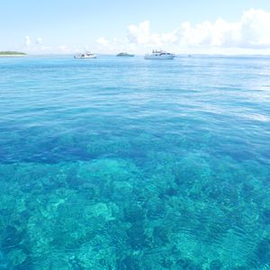 The weather in Okinawa on the day was forecasted to be rainy and cloudy. When we departed from Naha, we could see rain clouds in the distance, and I was worried about whether the underwater scenery would be clear during the rain. However, as we approached the Kerama Islands, the sun peeked through, and we were able to see the beautiful Kerama Blue. We went snorkeling in two spots near Kuefu Island, and I was more impressed by the second spot in the shallows, where the fish and corals were much clearer and more vibrant. Unfortunately, we didn't encounter any sea turtles, but I heard that the full-day plan has a higher chance of seeing them. The staff was very kind, so I would like to participate in the full-day plan next time.