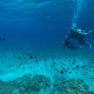When it was time for the experience diving, we entered the water and practiced with the mask and breathing. On that day, I was having trouble with my ears and nose, and even after putting my face in the water several times, I felt breathless. I felt bad for keeping the instructor waiting, so I offered to stop. However, the instructor encouraged me, saying, "You've come all this way, and it's only 20 minutes, so let's do our best!" After several attempts, I finally managed to dive. Once I was underwater, I felt better and was really glad I went for it! I believe I wouldn't have been able to dive without the instructor's encouragement. Thank you so much!