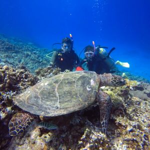 We participated as a couple. Since last year, I've been fascinated by the sea turtles in Kerama, so we returned to Kerama this year! This was my third time diving, and I’m still a beginner. This time, perhaps due to the typhoon, there were quite a few waves and winds, and I felt that the visibility was slightly lower than last year. I want to thank the staff at Seasa for taking care of us for the first time.