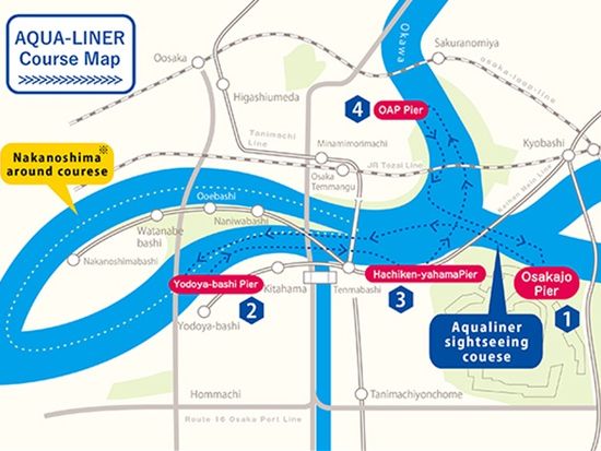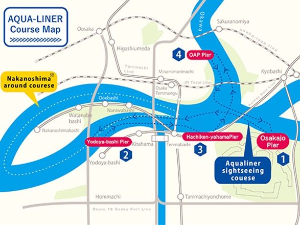 This round-trip ticket for the Aqualiner will allow you to cruise on the Okawa river. See the amazing architecture and greenery in the heart of Osaka. Board from any of the 4 boarding spots.