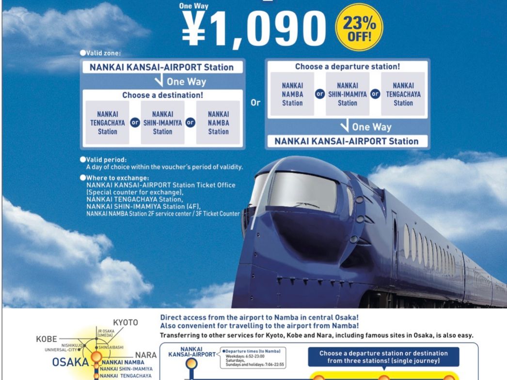 Nankai Rapi:t Ticket Single Journey from Kansai Airport (KIX) to Osaka