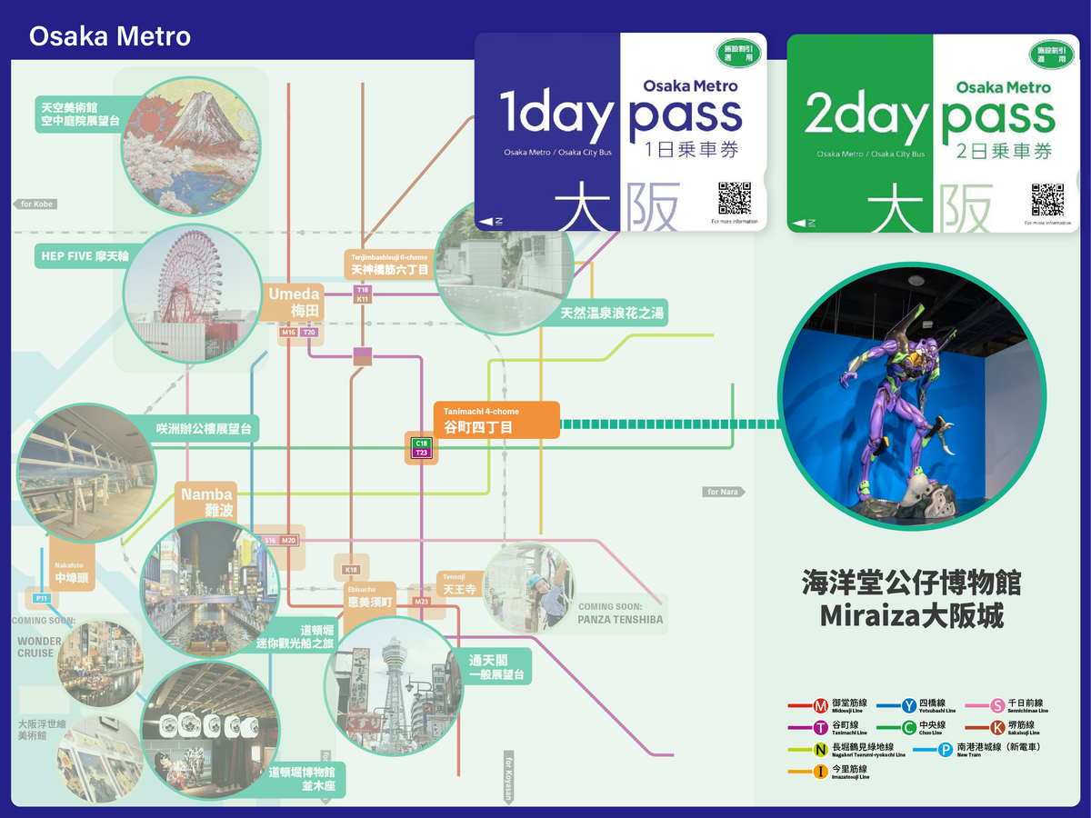 Explore the Kaiyodo Figure Museum Miraiza Osaka Castle and enjoy unlimited Osaka Metro rides with this combo. Discover detailed figurines and travel seamlessly across Osaka with a 1 or 2 day pass.