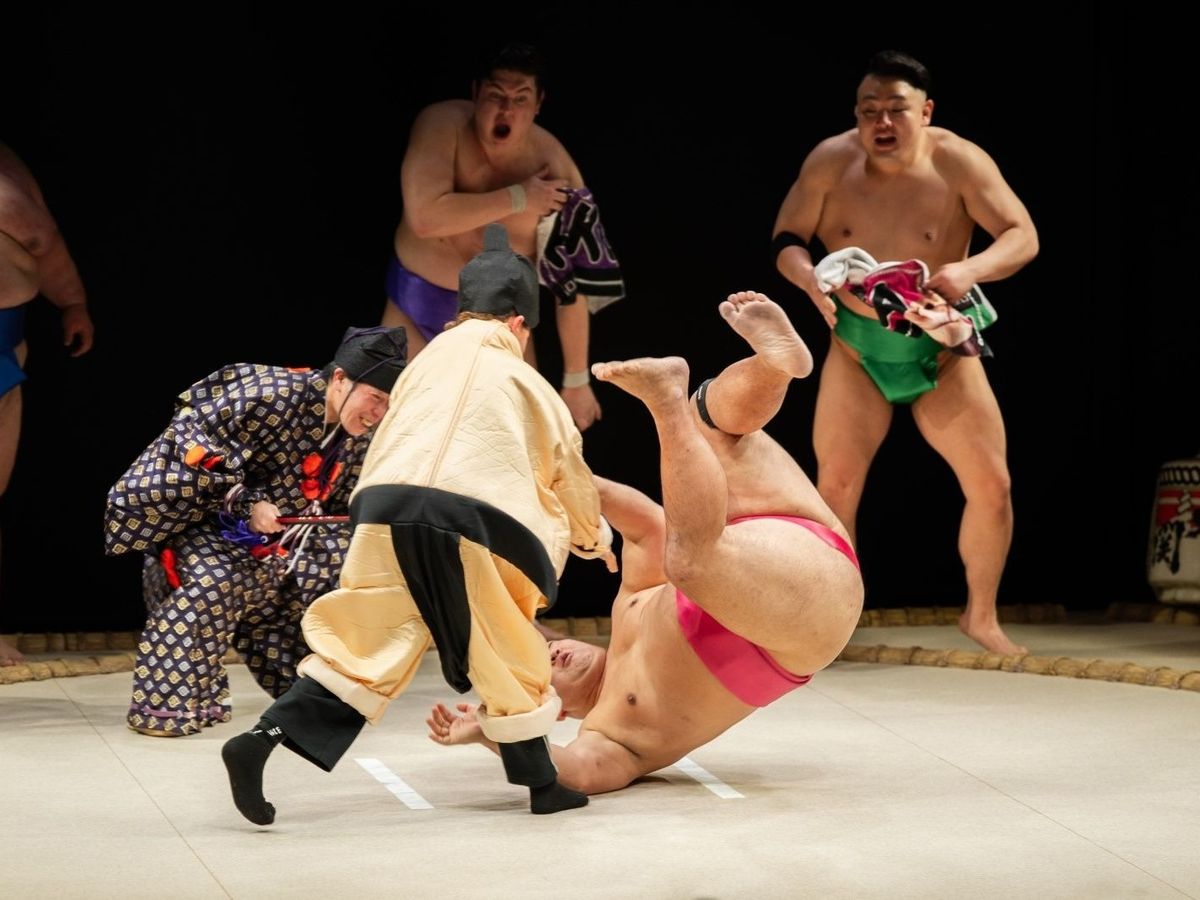 Enjoy a powerful sumo show while tasting a Japanese-style bento. In addition, take commemorative photos with former sumo wrestlers, and those selected by lottery will have the rare opportunity to step into the ring and interact with the wrestlers.