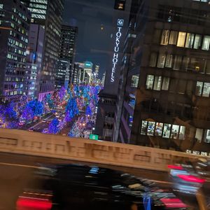 御堂筋の街路樹は、色とりどりのイルミネーションでとてもきれいでしたし、高速から見下ろす景色も綺麗で楽しめました。