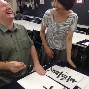 Our hostess was charming and friendly. She was able to demonstrate and explain the art of calligraphy very clearly and we had a great time practicing our words and names and then producing a copy to take home and frame. My son and I were the only ones in the class so had her undivided attention. She was very complimentary about all our efforts.