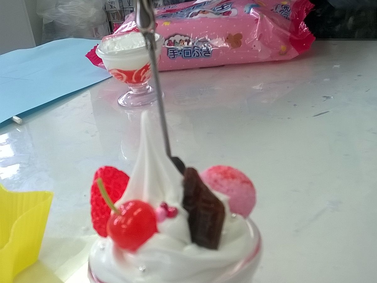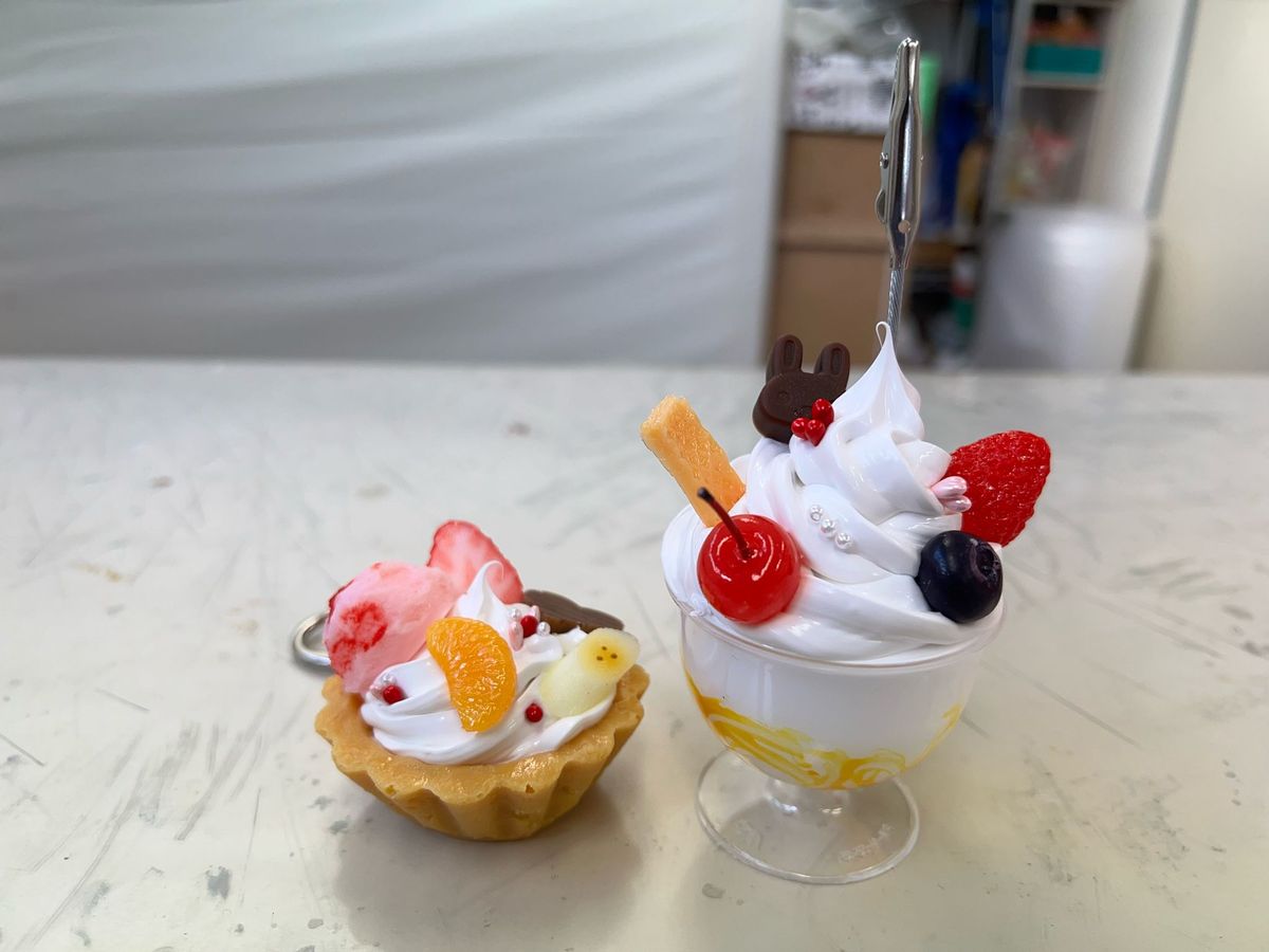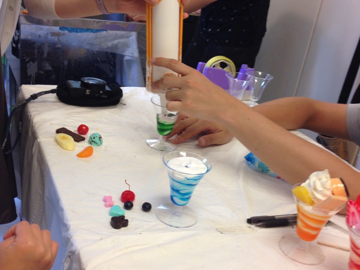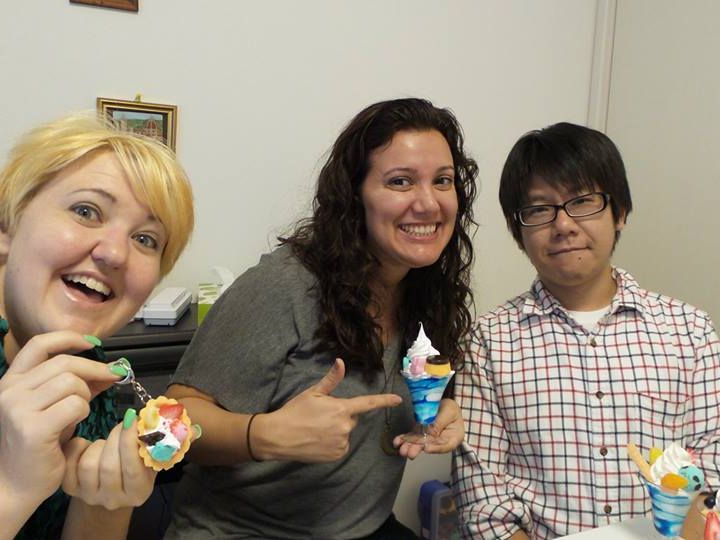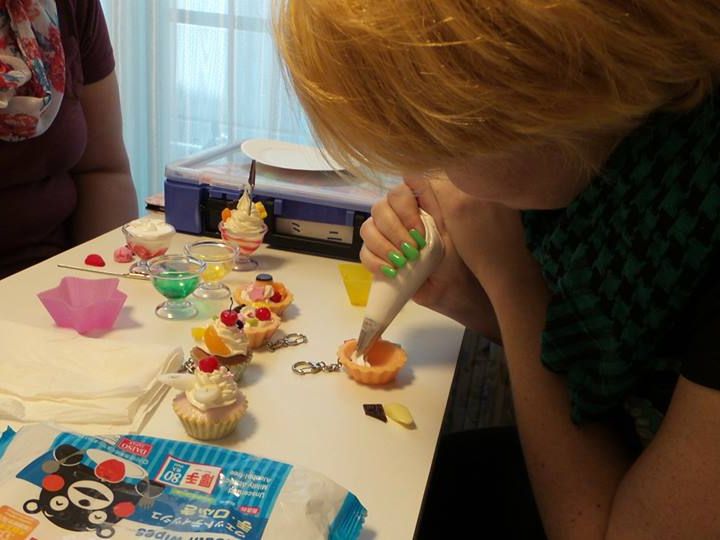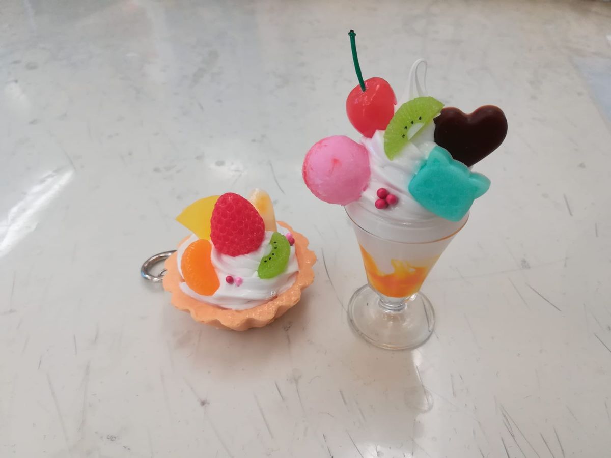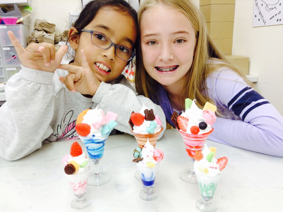 2 large sundaes, 1 cupcake photo holder, 1 tart keychain, and 1 ramen bowl sample (and a partridge in a pear tree, lol) made by our group