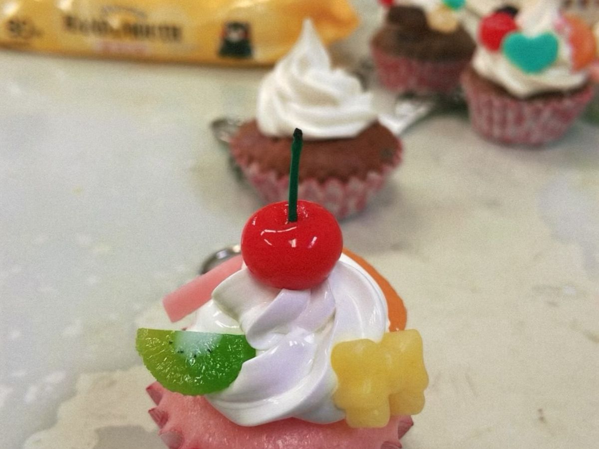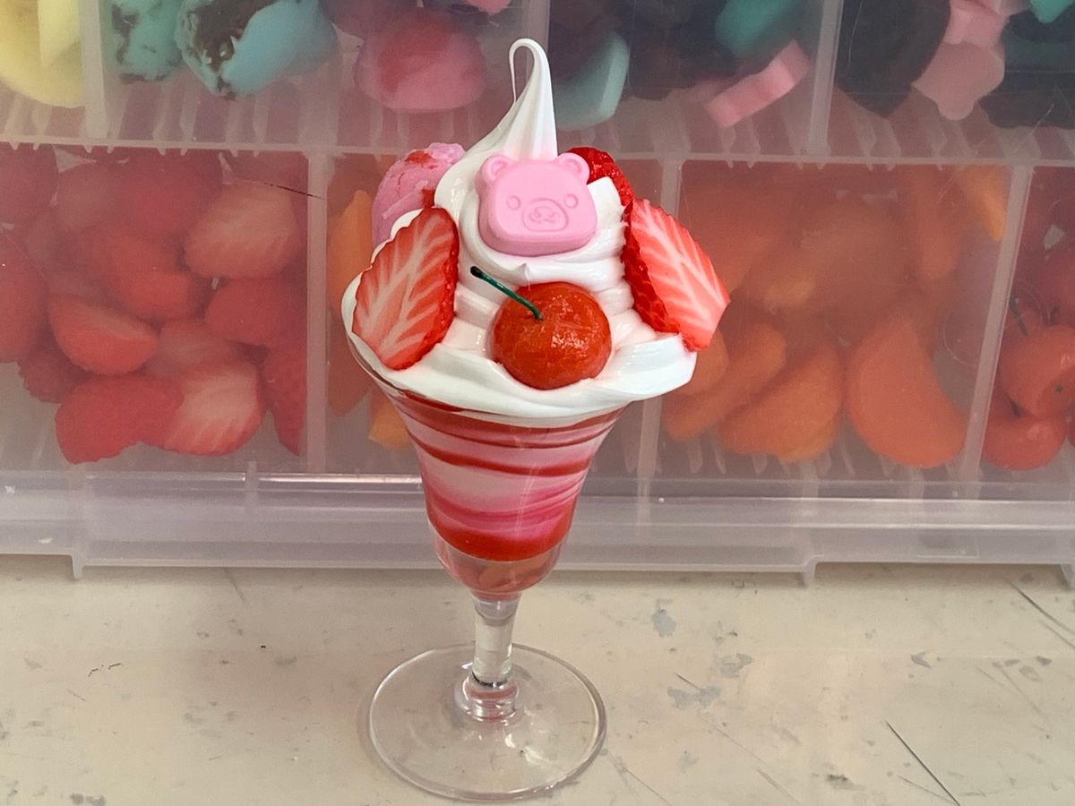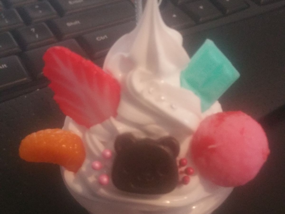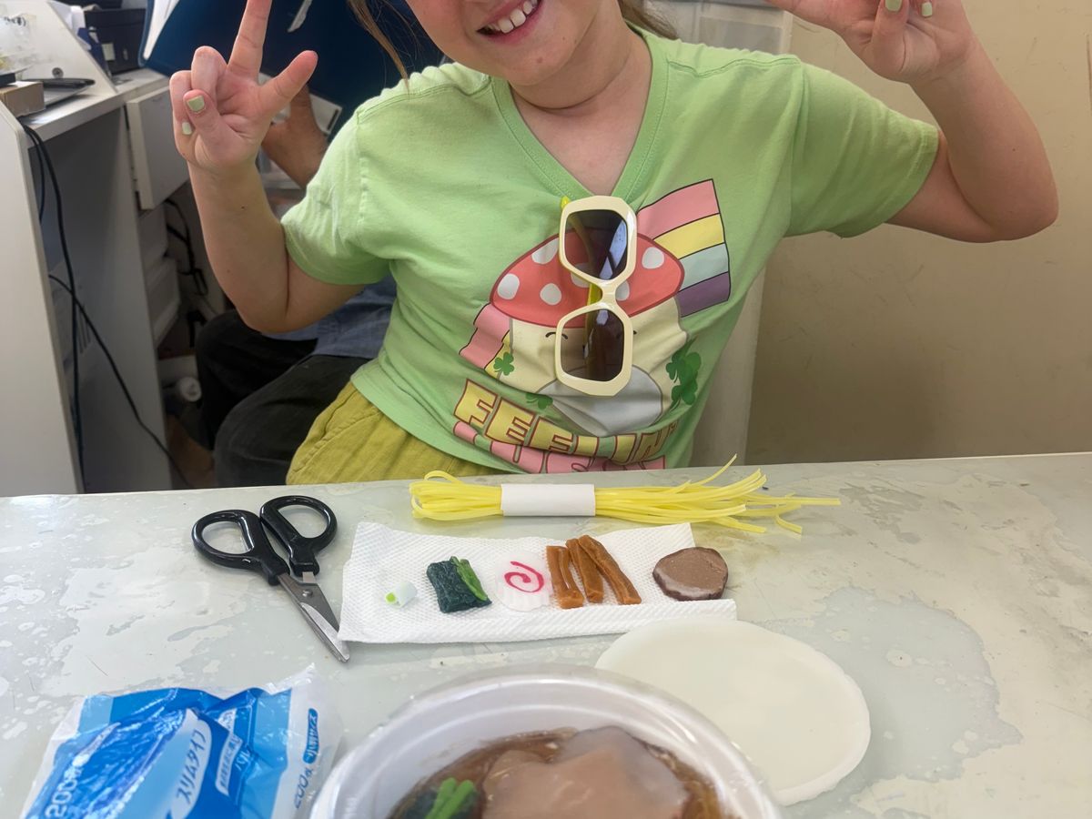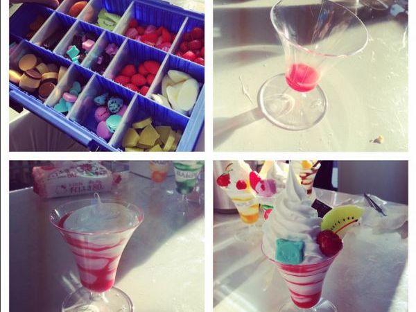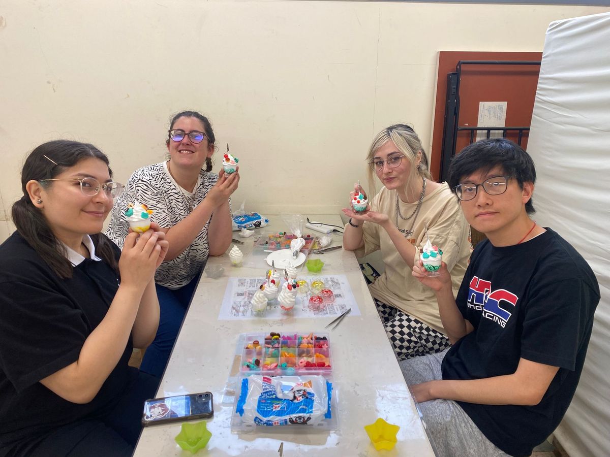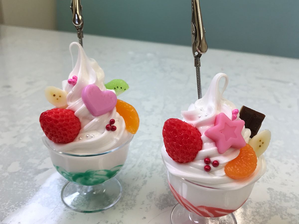 2 large sundaes, 1 cupcake photo holder, 1 tart keychain, and 1 ramen bowl sample (and a partridge in a pear tree, lol) made by our group