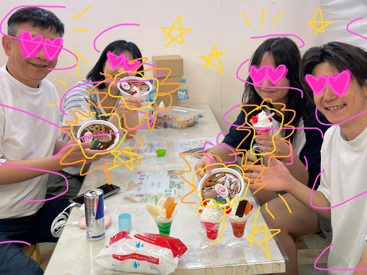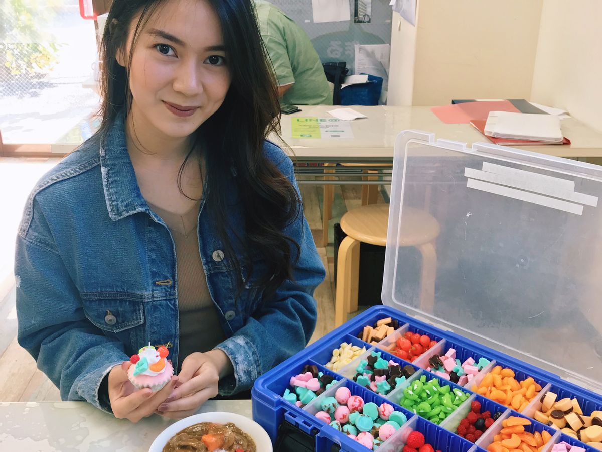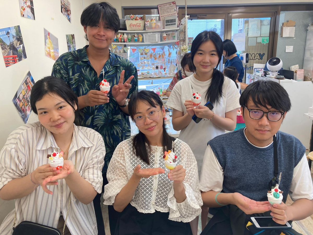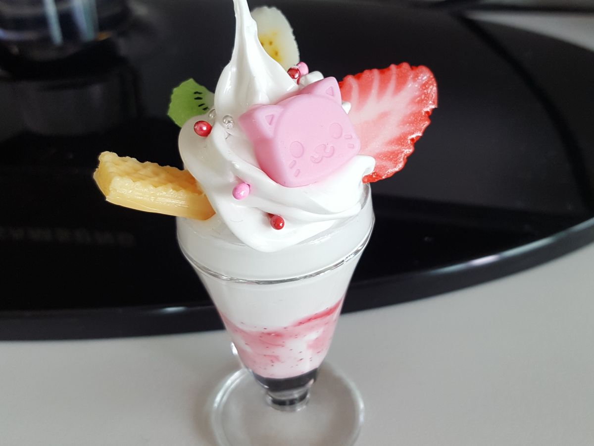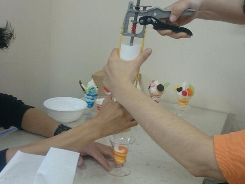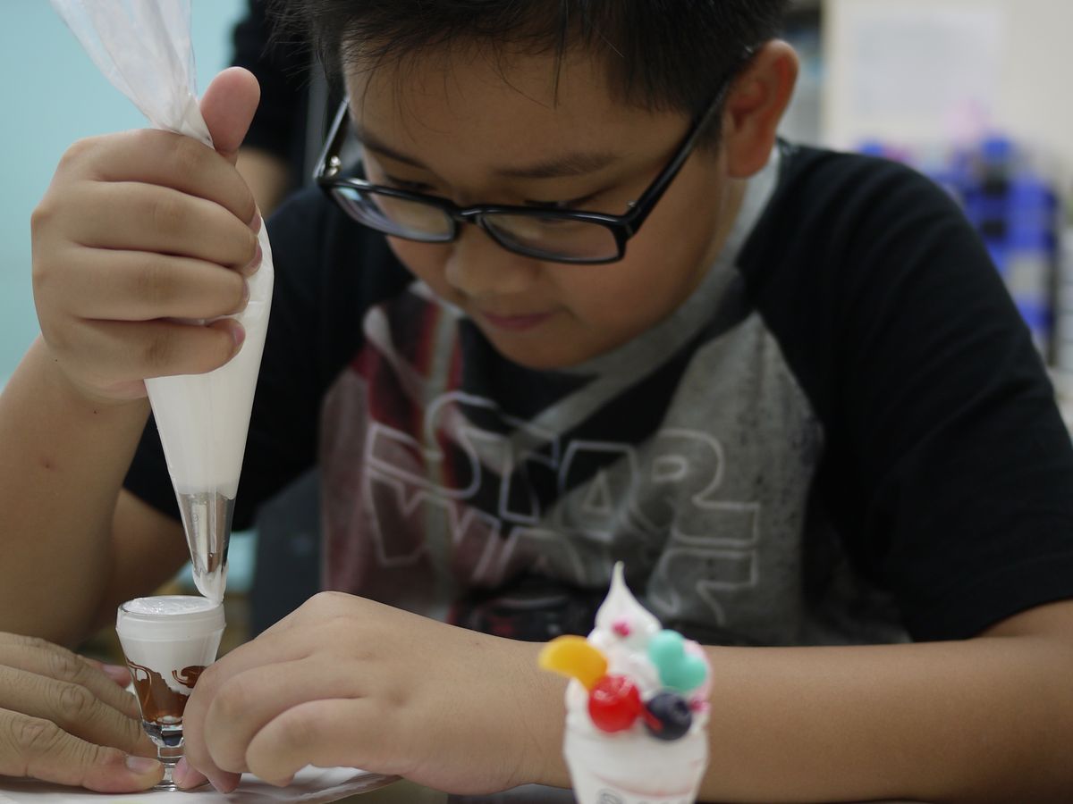 2 large sundaes, 1 cupcake photo holder, 1 tart keychain, and 1 ramen bowl sample (and a partridge in a pear tree, lol) made by our group