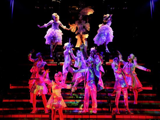 Get ready for the signature Neo-Kabuki style dinner show featuring an energetic cast of female, male, and new half dancers on a moving 3D stage!