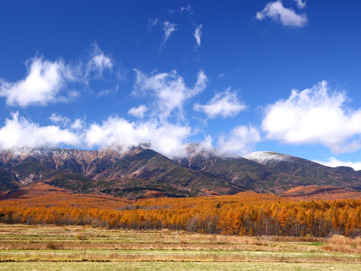 Experience an autumn spectacle featuring the Yatsugatake Mountains where the bright fall colors of larch trees resemble a "Golden Carpet". Enjoy grape picking and wine tasting further into the day.