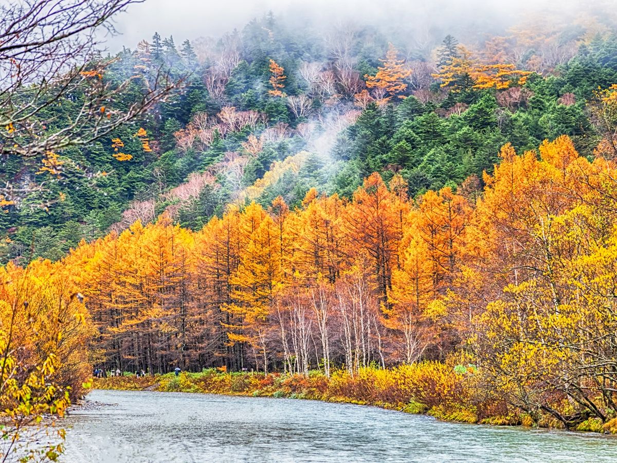 Auburn-colored trees in Kamikochi National Park