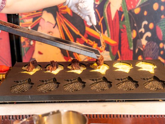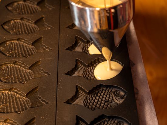 Like authentic Japanese sweets? Try making your very own taiyaki fish shaped cake filled with the authentic red bean or add a twist by adding cream or even curry filling! See the techniques and taste a freshly baked taiyaki on the spot!