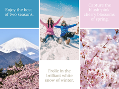 Experience two seasons in one day as you set off on a bus tour from Shinjuku to see Mt. Fuji, snow, and early cherry blossoms. Frolic in snowy fields, eat juicy strawberries and go shopping at Mishima Skywalk for a taste of winter and spring.