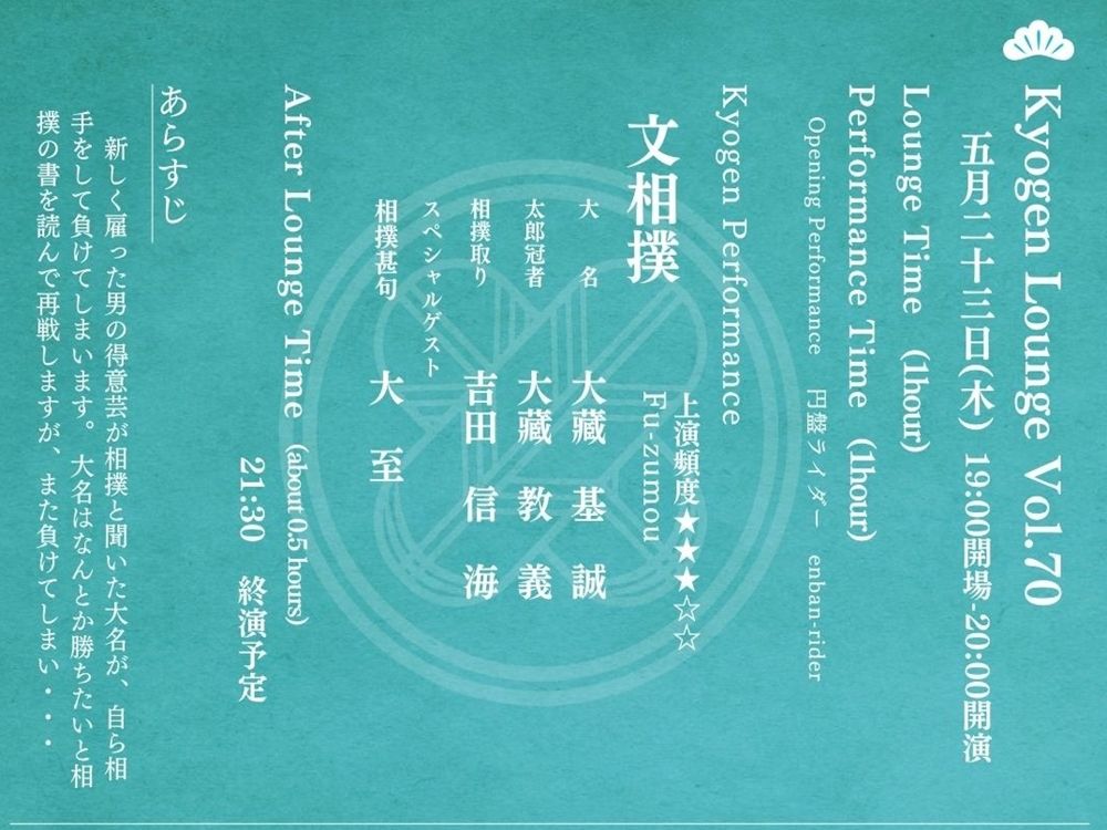 Traditional Kyogen Theatre with Luxury Dinner in Shibuya (May 23, 2024)