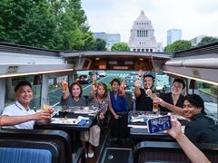 Discover Tokyo's night view on a restaurant bus while enjoying a Western-Style dinner course and sparkling Dassai. After the bus tour, explore local Japanese pubs in Ginza and Shimbashi with an English guide.