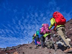 The climb begins! A certified Mt. Fuji guide will lead the way, ensuring even beginners can enjoy the experience safely. Take in the natural scenery and fresh air as you head toward the mountain hut.