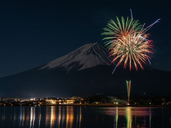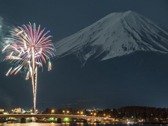 Experience Mount Fuji’s winter magic in one day. Explore the Saiko Ice Festival by day, then enjoy Lake Kawaguchi Winter Fireworks at night, with dazzling blooms reflecting on the lake – iconic winter views and unforgettable memories!