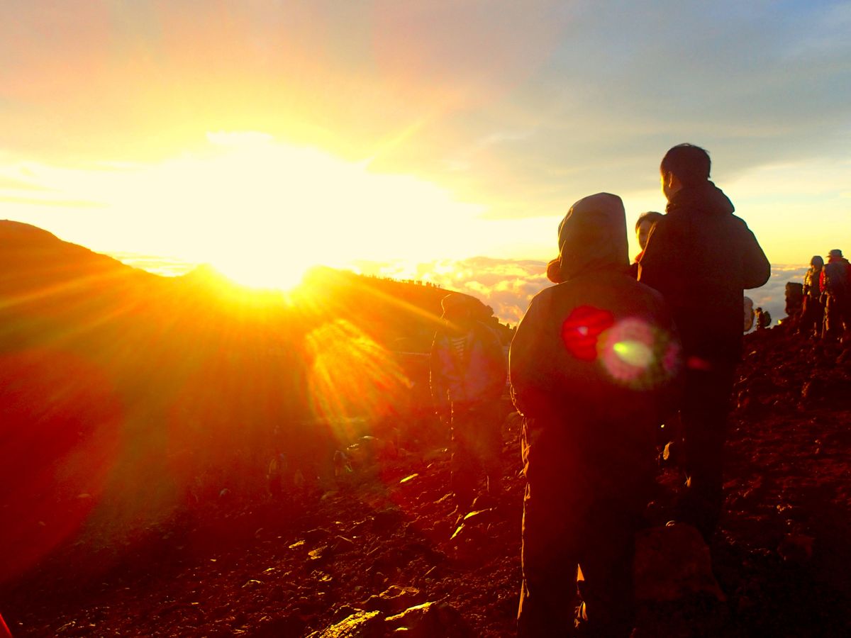 Climb Mt. Fuji via the shortest Fujinomiya Trail with a professional guide. Stay at Munatsuki Sanso (9.5th Station, 3,590m), just 500m below the summit. Depart at 3:00 AM, reach the top by sunrise, and stand on Kengamine — Japan's true highest point.