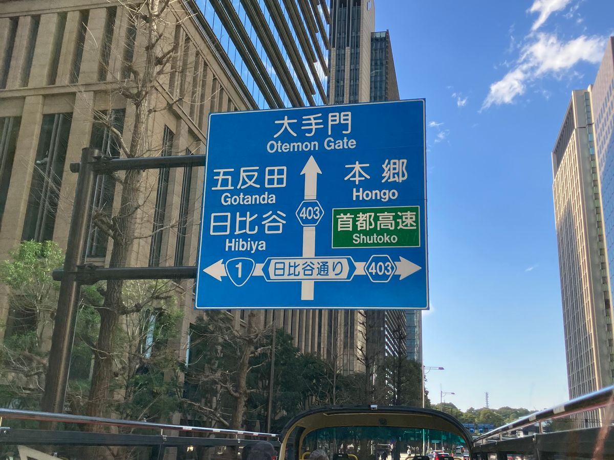 The wind was a bit chilly, and we could hardly see any cherry blossoms, but it was enjoyable to tour around Tokyo from the roof of a double-decker bus, which is not something you can do very often.