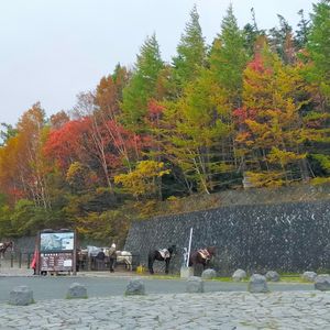 In the morning, there were a few clouds, but by noon the clouds disappeared and it was clear. The lunchtime houtou was delicious. However, it was unfortunate that a child was crying on the bus the whole time. On the way back, we were delayed by traffic and arrived an hour late.