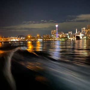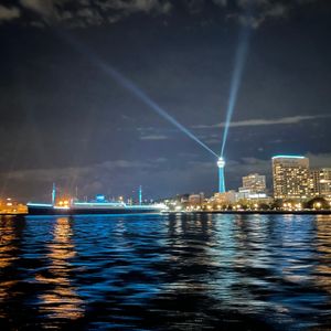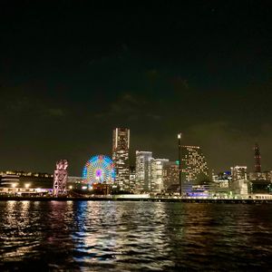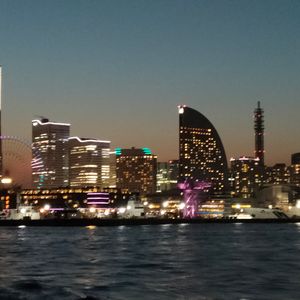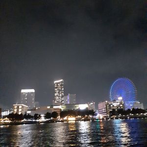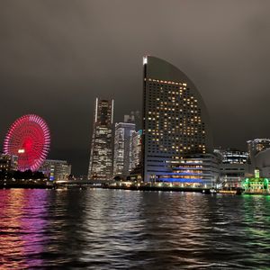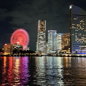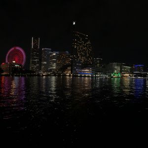海から眺める横浜の夜景もカラフルで綺麗でした。