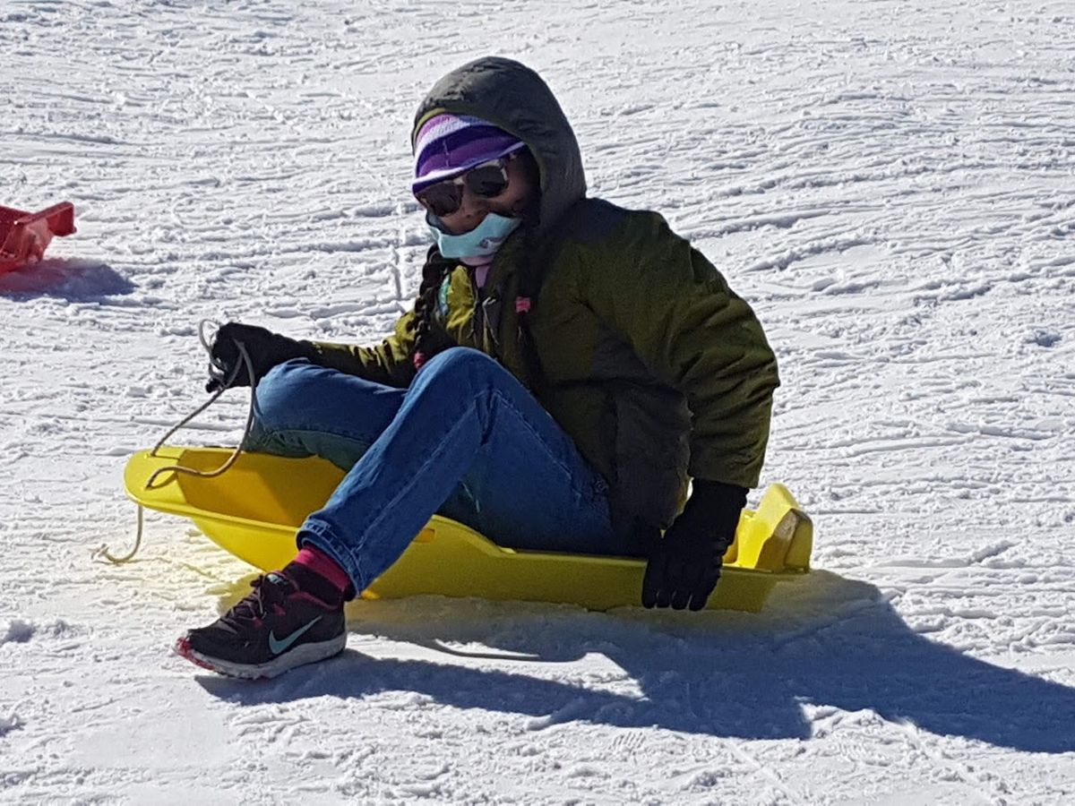 Wear shoes with grip, even though sliding in the snow is fun!
