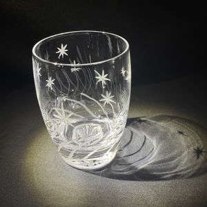 江戸切子のグラスも以前体験したことがあるけど、サンドブラストの方が簡単で自分のイメージに近い作品ができました。