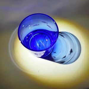 Regarding the glass selection for the Edo Kiriko experience, I was told that beginners should avoid glasses with dark colors. However, I really wanted a red or blue glass, so I chose blue this time.