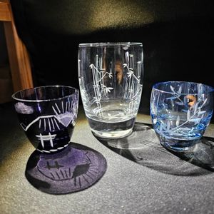 As a birthday experience for her, I was able to create an original glass with careful guidance. It wasn't difficult, and seeing the displayed glasses helped spark my imagination, so my satisfaction level is high! I have previously experienced Edo Kiriko glass, but I found sandblasting to be easier and I was able to create a piece that was closer to my vision. Next time, I want to think of a design and challenge myself with a more advanced one.