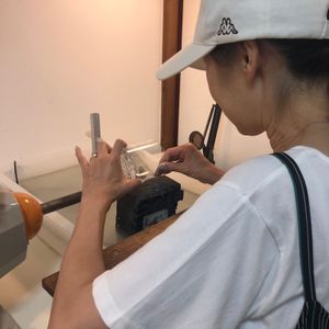 一年位前に同じお店で体験をしました。今回は色違いのものをつくりたくて、再度体験しました。丁寧に教えていただきましたが、やはり難しく、時間はあっという間です。同じデザインのものをつくるつもりで意気込んでいきましたが、改めて江戸切子の難しさを実感しました。それでも楽しい経験です。また伺いたいと思います。