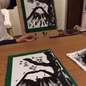The location is close to the station, maybe three minutes from the nearest exit, and the shop itself is easy to find being on the main road. The session itself takes place in the shop/atelier, the walls lined with sumie works on general sale. In the lesson I learnt a little about sumie history, techniques and styles. The instructor speaks English well and is friendly and patient. I painted five small pieces following his example which featured bamboo, Mt. Fuji and cherry blossoms and was able to take my attempts home. He gave me good advice and directions to a washi (Japanese paper) store after the session. I recommend the experience to anyone interested in sumie and wanting to give it a try!