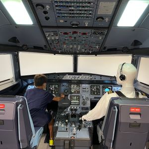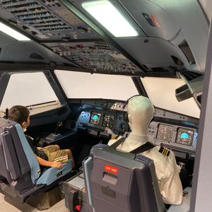 What left a particularly strong impression on me was sitting in a booth that simulated a cockpit and experiencing a video of a storm scene playing outside the window. The interactions between the pilot, co-pilot, and ground control were realistically recreated, and it was immersive and enjoyable until landing.
