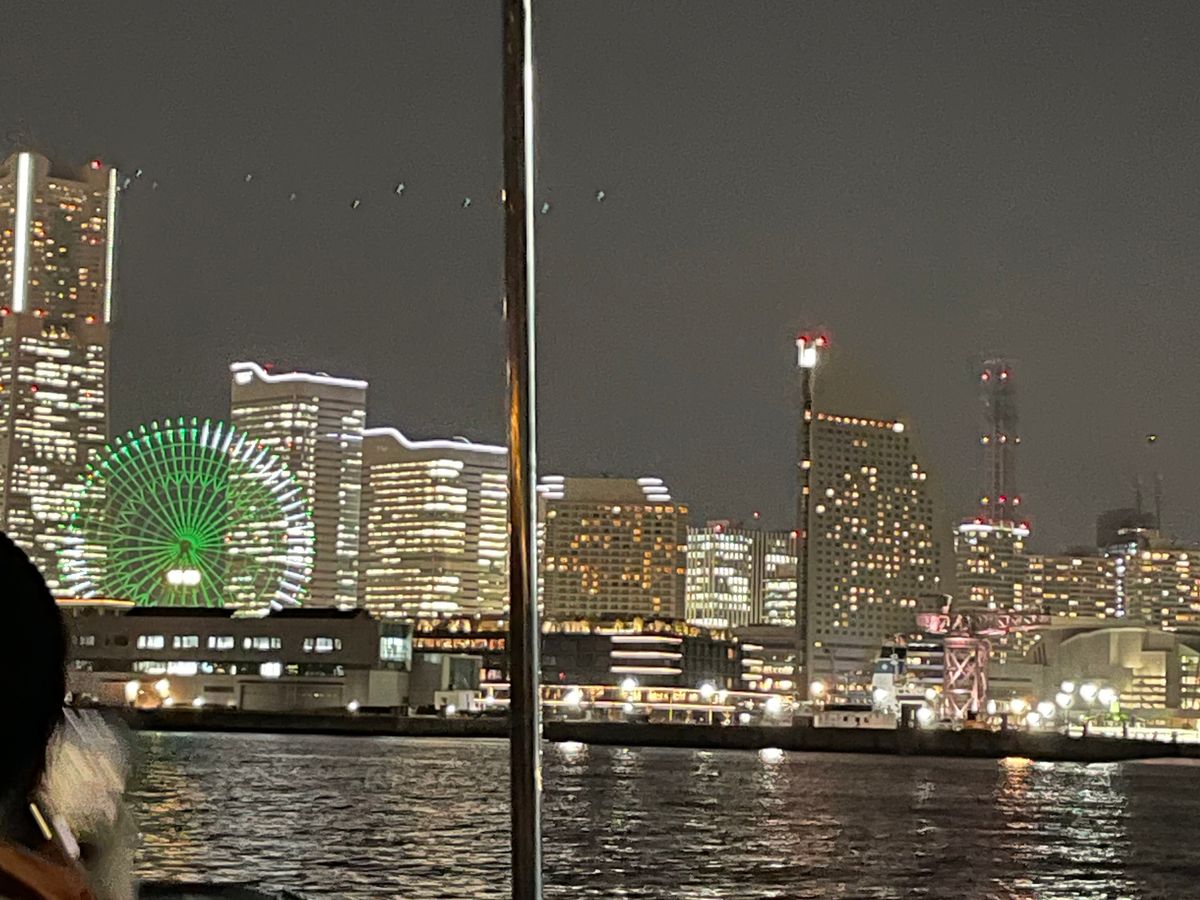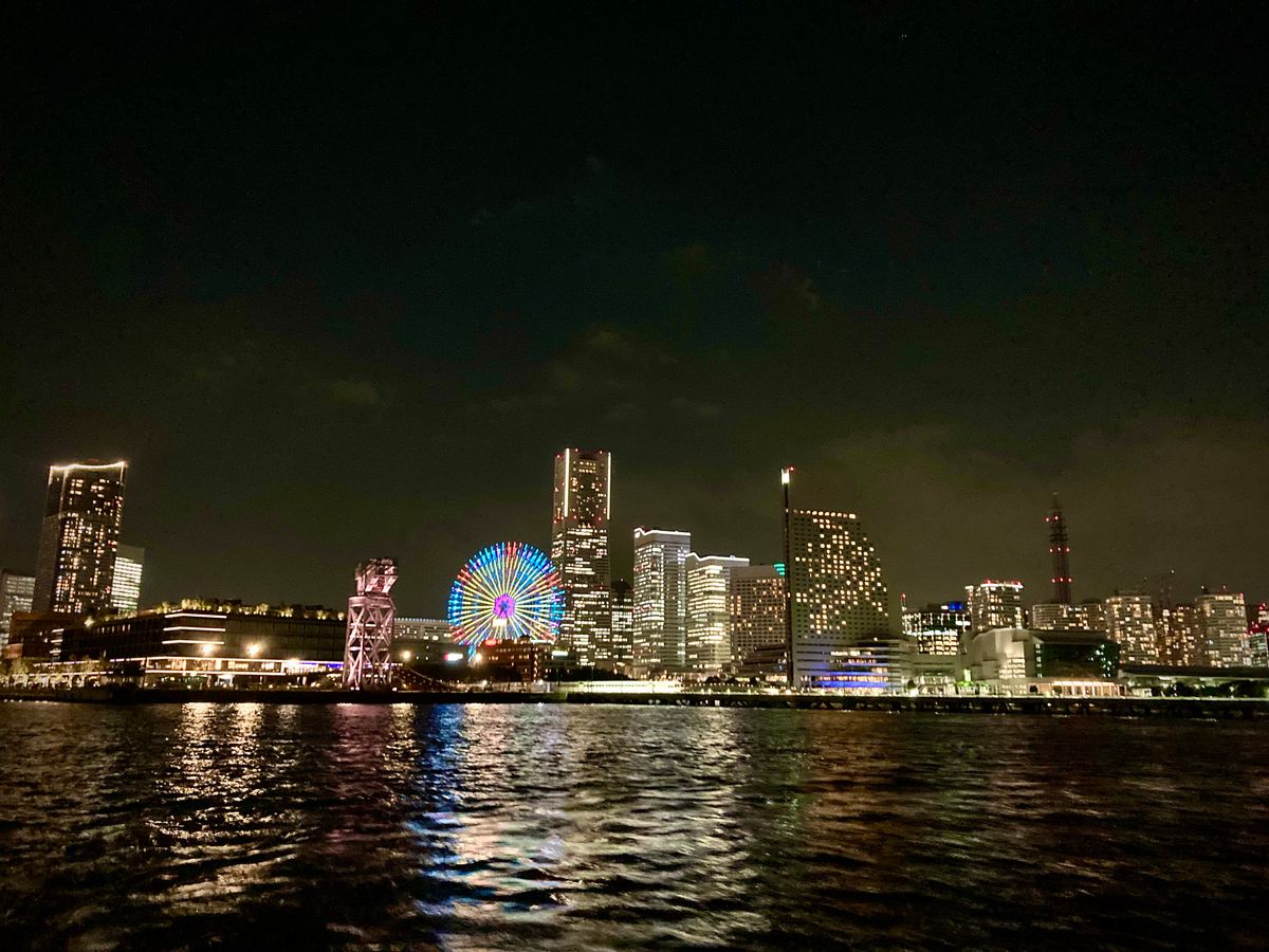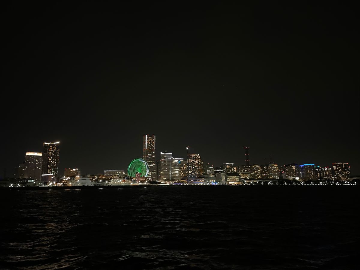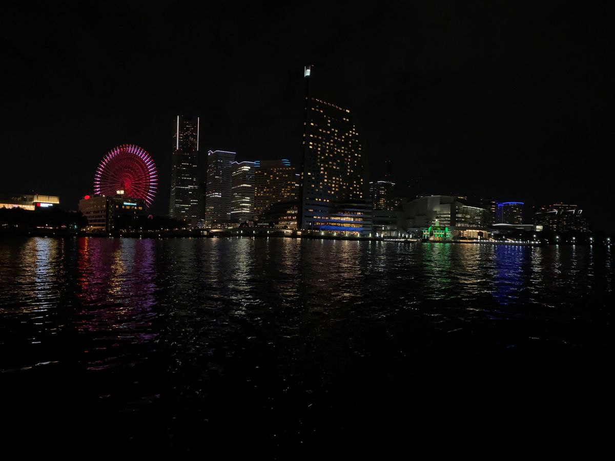 海から眺める横浜の夜景もカラフルで綺麗でした。