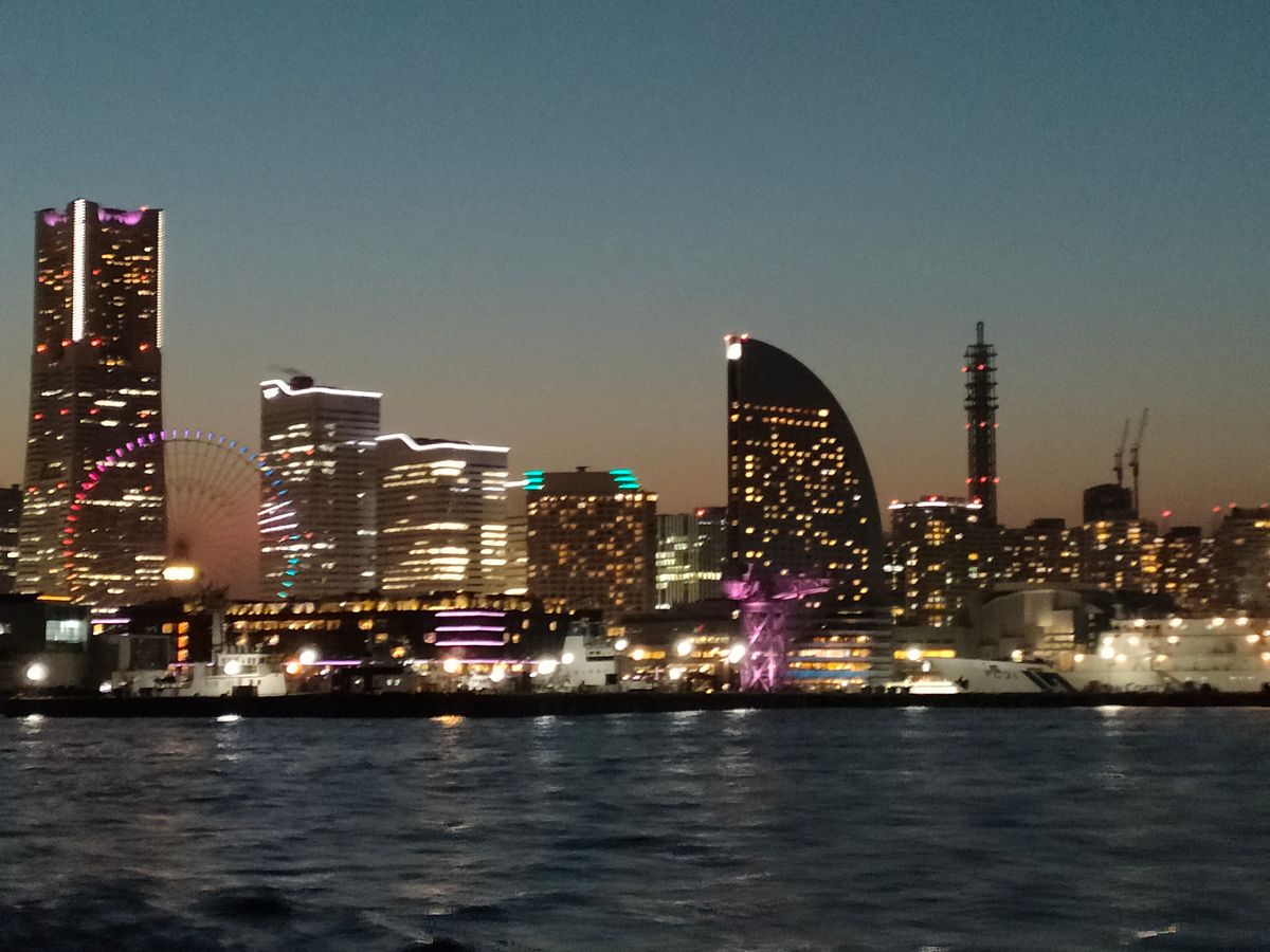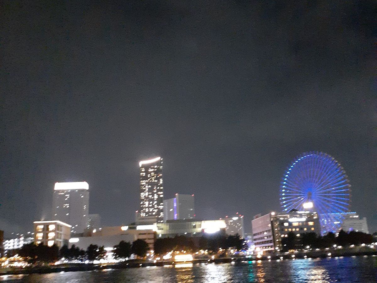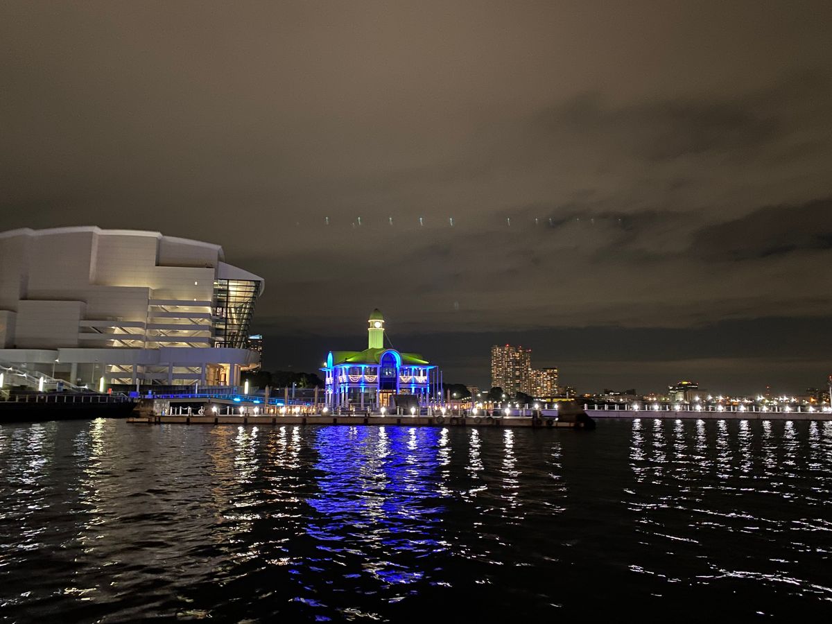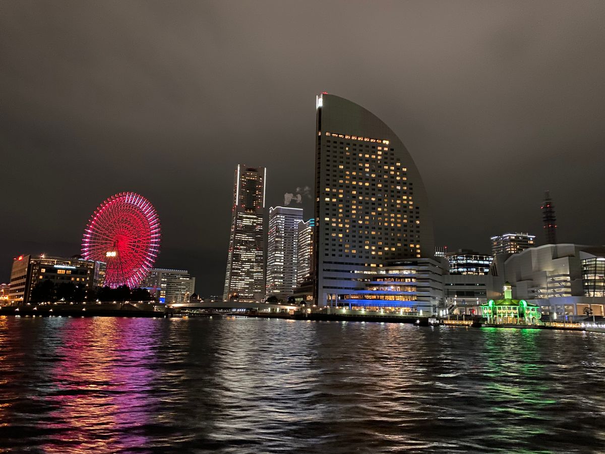 海から眺める横浜の夜景もカラフルで綺麗でした。