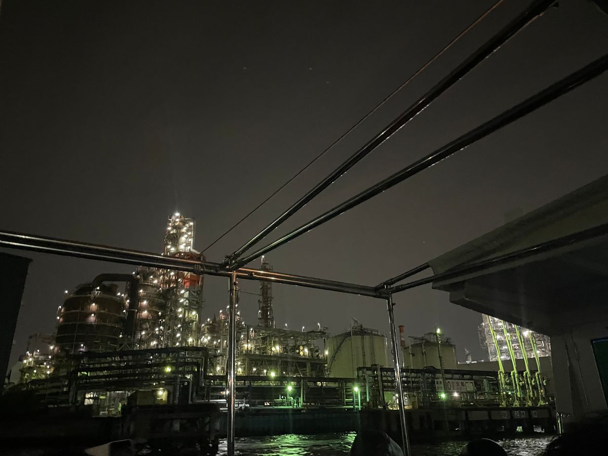 I took a small boat from the Minato Mirai Osanbashi Pier and enjoyed the night view of the Kawasaki industrial area while passing through the Keihin Canal, and it was a lot of fun.