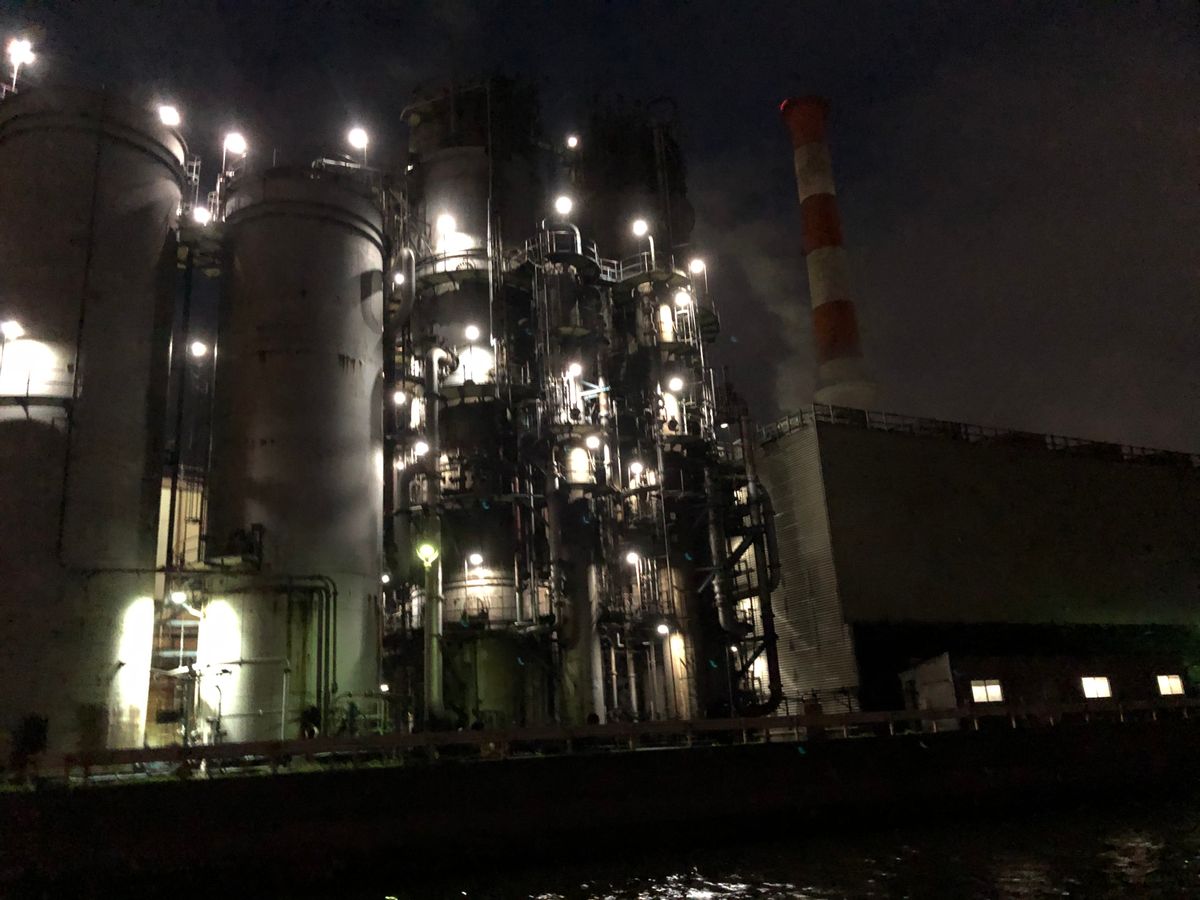 工場夜景の迫力も素晴らしかったですがこの昼夜稼働しているこの工場のおかげで快適な生活がおくれているのがありがたい、とも思うクルーズでした。