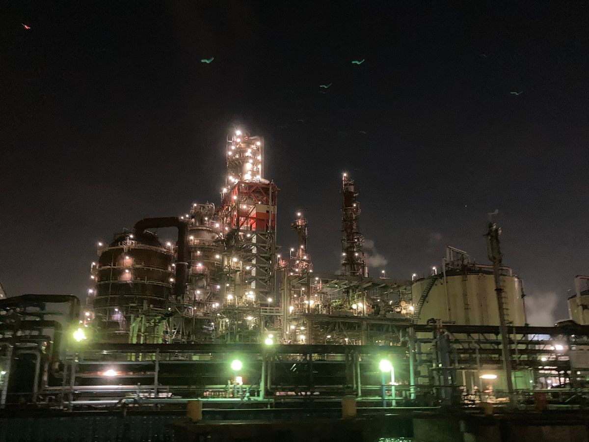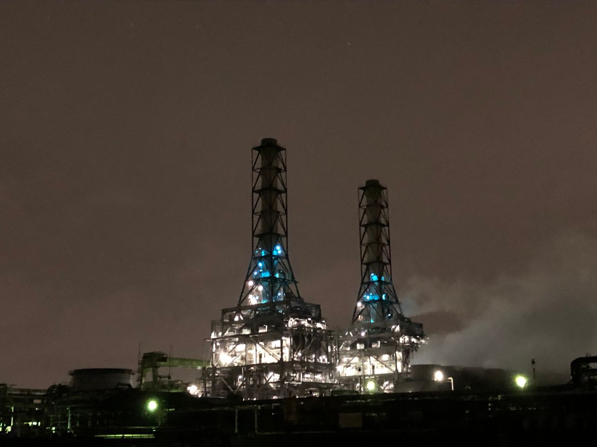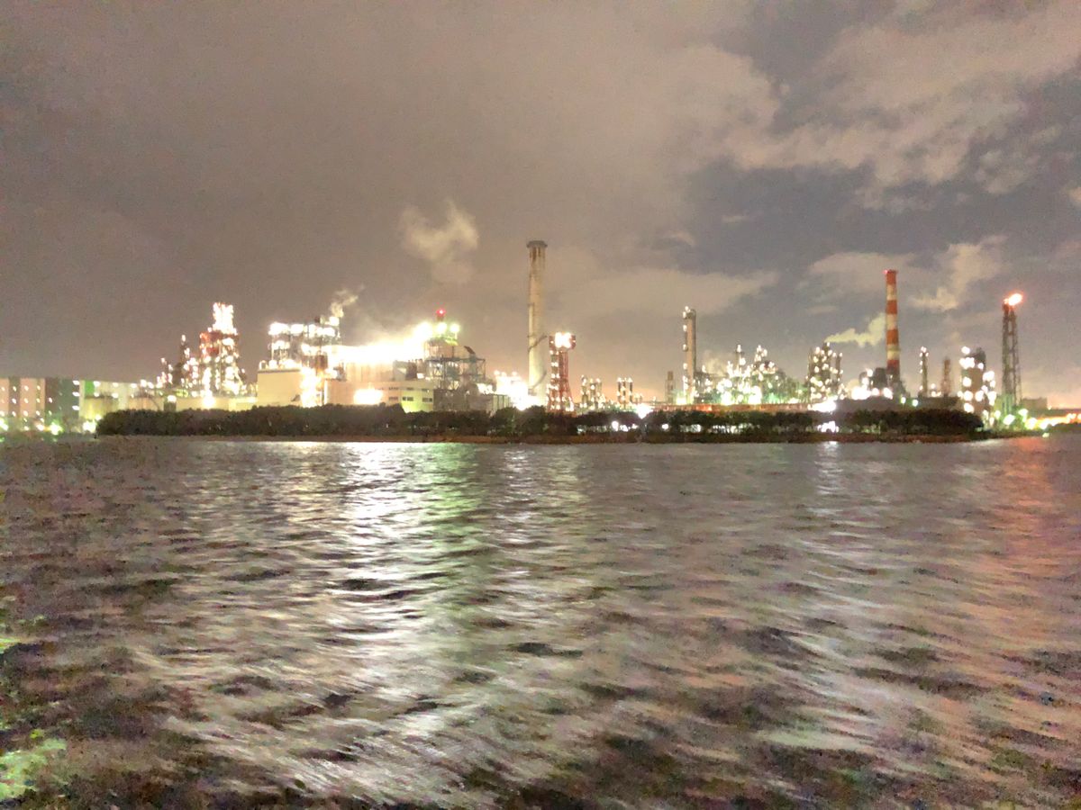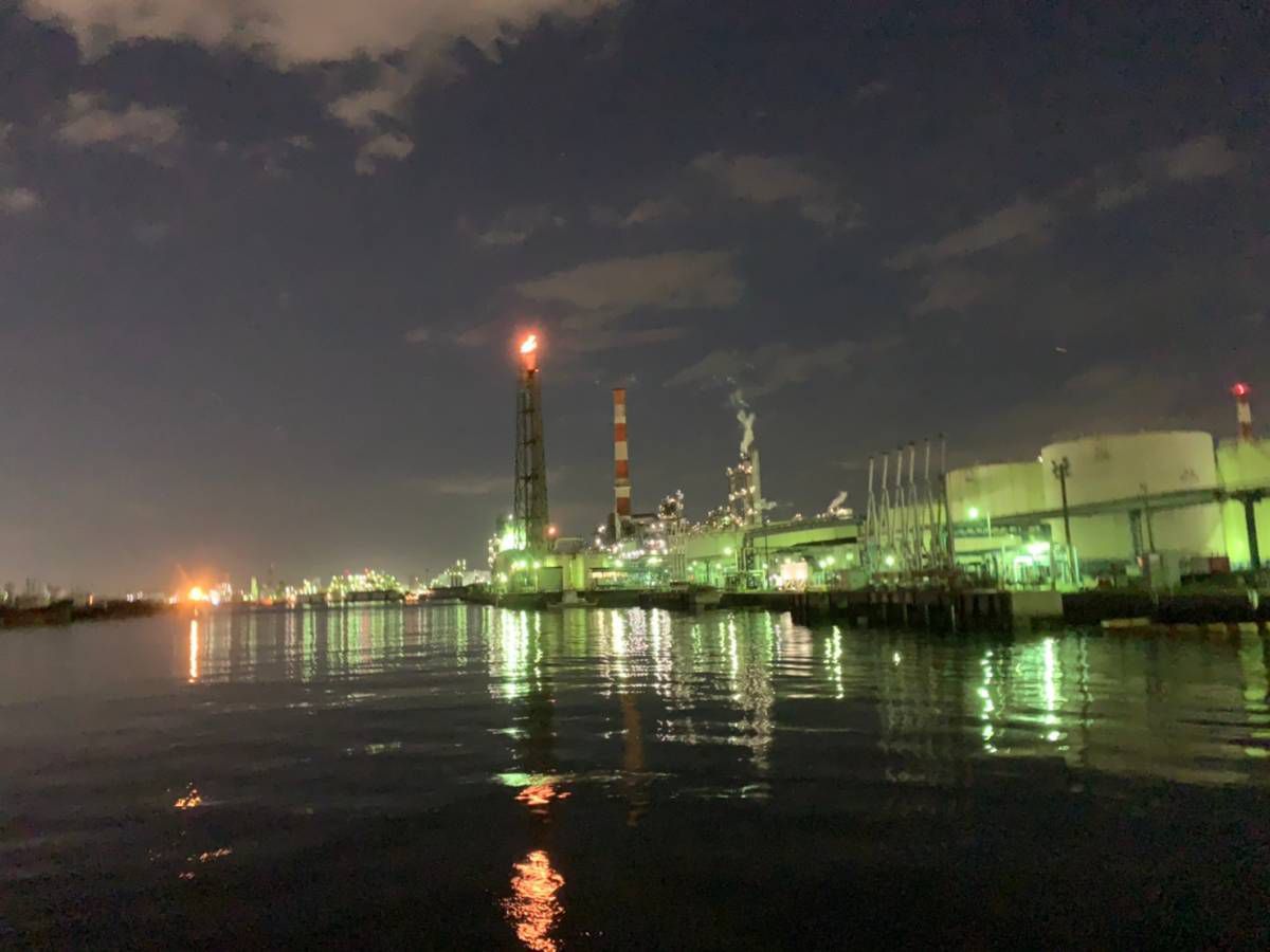 I always saw the factory scenery from the highway, but this time I got to see it from the sea, and it was such a wonderful and otherworldly experience! The powerful flames and the fantastical lighting… when viewed through the camera, it had a different charm than what I saw with my own eyes, which was great too.