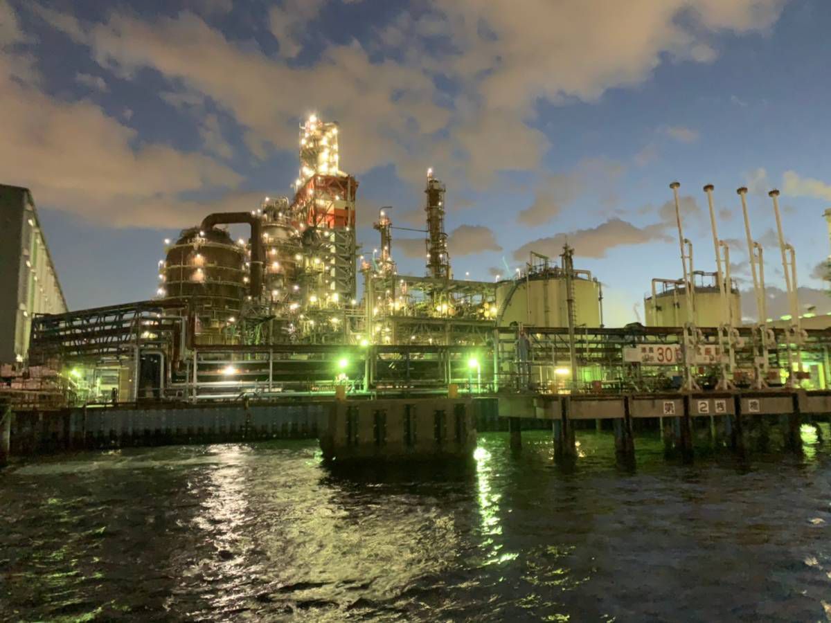 いつも高速道路から見ていた工場の景色ですが、この度は海から拝見させてもらい、すごく異空間で素敵でした!!
