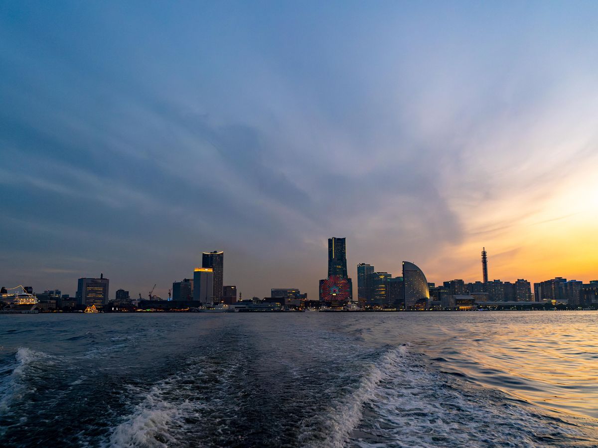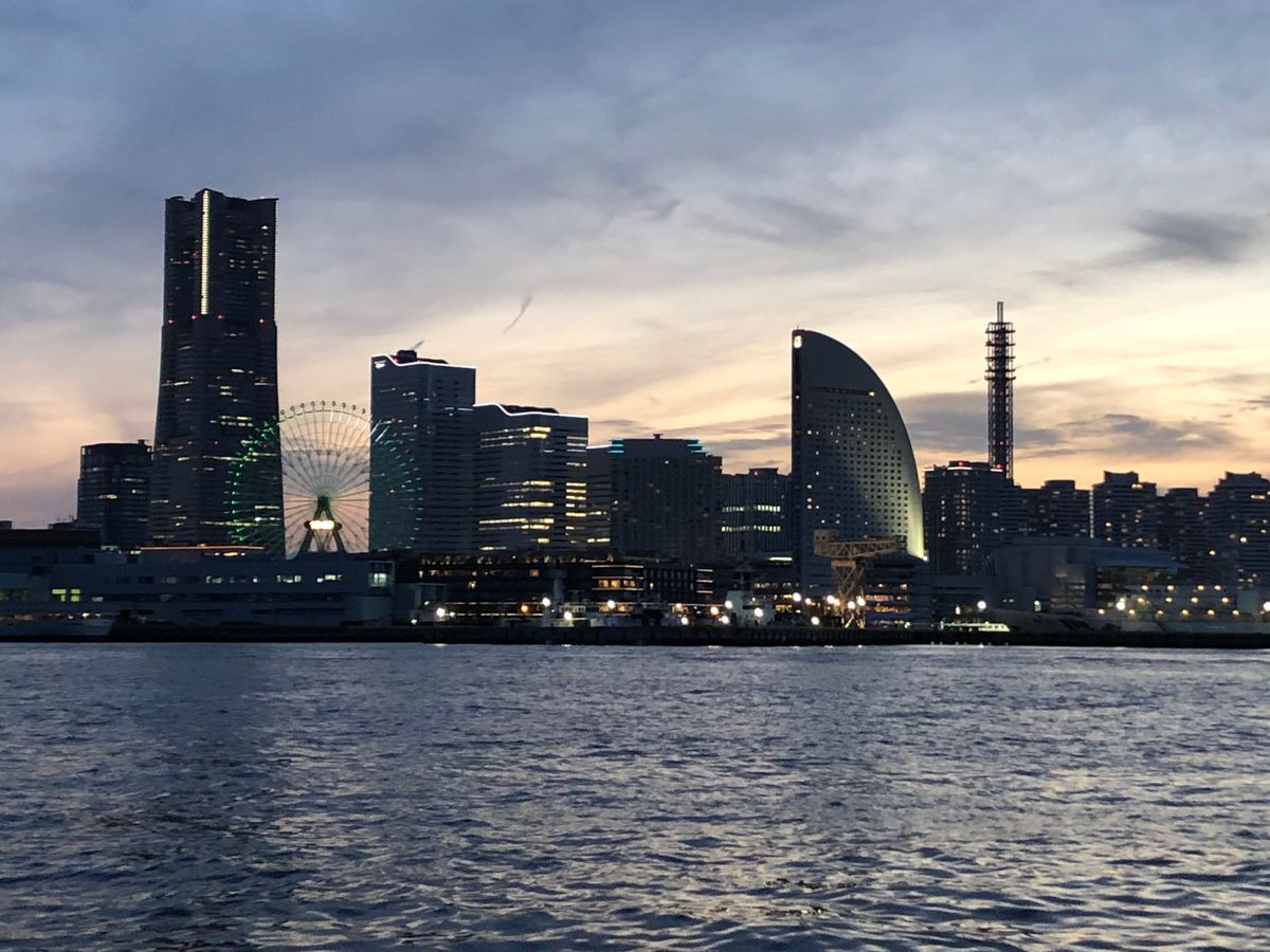 みなとみらいの夕暮れや夜景と大さん橋から見える