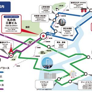 We pass through the Shibuya Scramble Crossing, where you can see Tokyoites skillfully navigating the streets. This is the turnaround point, and we head back to Tokyo Station. The rows of trees near the State Guest House and glimpses of Tokyo Tower between the buildings excite us passengers. The bus passes by the Ministry of Land, Infrastructure, Transport and Tourism building and returns to Marunouchi.