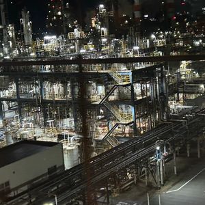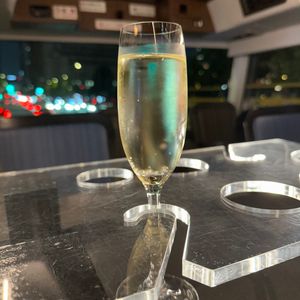 工場の灯りが幻想感で溢れている。バスで移動しながらの食事は、振動でグラスが一斉にチリンチリン、カンカン、キンキンと歌い出して、コケティッシュ。バスの中から見る景色も、普段と目線が異なり非日常感一杯。バスの屋根を手動で開け閉めするのも一興。道路を歩いている人もバスの姿に圧倒されている。すごく思い出に残りました。レストランバスは東京以外にも導入されてきているので、ほかの都市でも利用してみたいと思います。