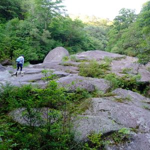 I participated in a course that started at 9 AM on May 15. It was raining from the morning, and the water level was a bit high. I had heard that there was quite a difference in elevation, but the path was better maintained and easier to walk than the Jomon Sugi trail. On the way to the Mononoke Forest, the greenery and the sound of flowing water were beautiful, allowing me to fully enjoy nature!